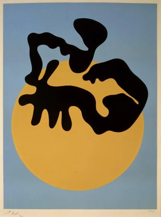 Arp saw chance as his greatest collaborator. Throughout his career, working across almost every medium available to him, Arp bridged the gap between 20th century art movements, but his breadth belies a consistency of thinking. Arp worked with form first, generating shapes and letting the artwork move from there. The conscious mind was a hindrance in creation – natural forms dominate his work and he presents visual information as an alien seeing it for the first time. The father of Organic Abstraction, his titles were the last element of any work to be considered. Here, a yellow circle is the sun, the moon, and the stars, and we are close to them all.