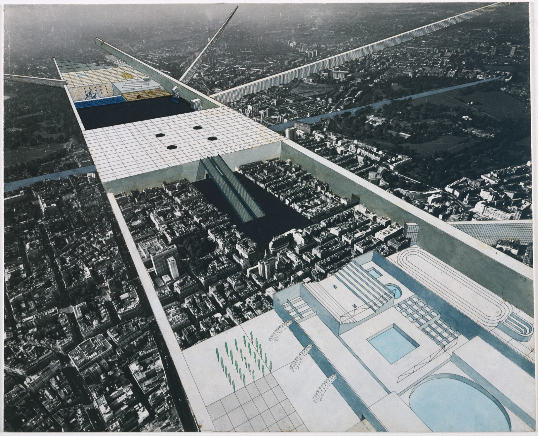 Exodus, or the Voluntary Prisoners of Architecture: The Strip (Aerial Perspective), Rem Koolhaas. 1972.
