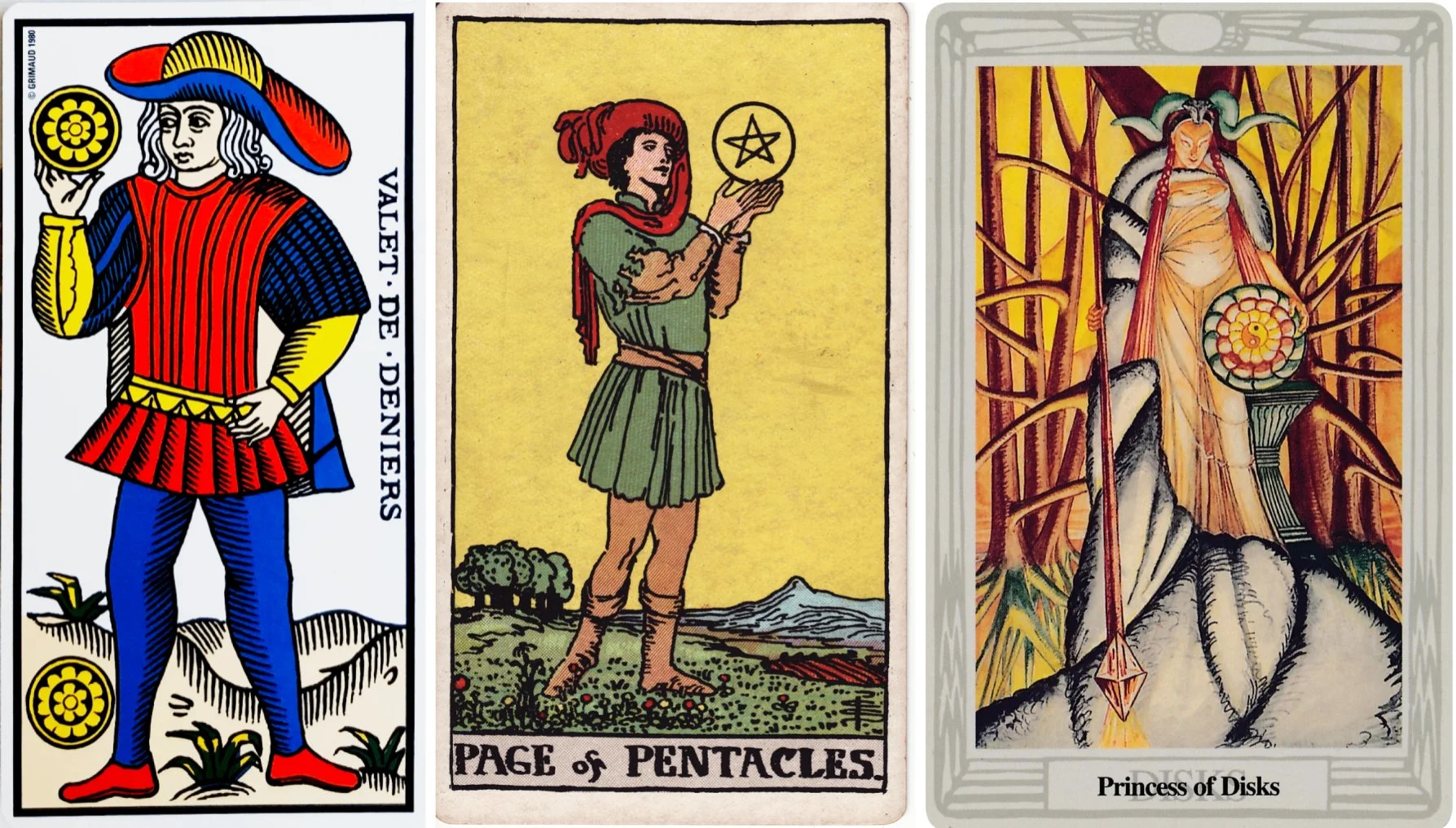 Page and Princess of Disks (Tarot Triptych)